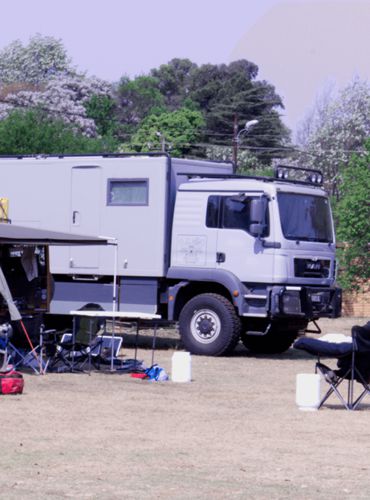 There is ample parking space for overland trucks and campervans to settle down near the airport or to sort thing out with your equipment and vehicle before and after your trip.